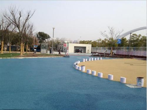 河北保定高碑店紅黃藍(lán)幼兒園彩色透水地坪?